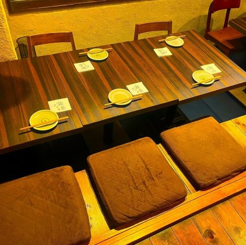 【少人数でも周りを気にせず『掘りごたつ席』】店の奥に位置する半個室席はこちらもゆったりなプライベート空間です。掘りごたつだから足も伸ばせます。最大7名様までご利用頂ける人気席で、こちらも直ぐに埋まってしまうのでご予約必至です。