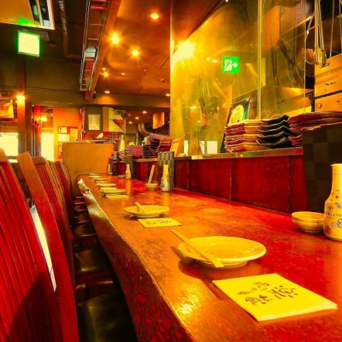 【ゆったり広々座れます『カウンター席』】キッチンの臨場感が体感できるゆったりカウンター席は隠れた楽蔵の人気席です。焼きあがったばかりの焼き物や新鮮そのものの鮮魚など、一番美味しく召し上がれるのは実はキッチンに一番近いカウンター席なのです。気さくに話も盛り上がるかも♪